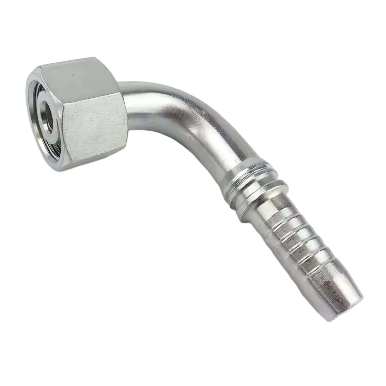 The 20491-18-06 is a high-quality hydraulic hose fitting designed for reliable performance in hydraulic systems. This fitting features a 90-degree bend, which is ideal for navigating tight spaces and ensuring smooth hose routing. It has a female metric thread size of M18 x 1.5 and is equipped with a 24-degree cone seat and an O-ring seal, providing a secure, leak-proof connection. Made from durable materials, this fitting is built to handle high-pressure environments, making it suitable for various demanding hydraulic applications.