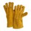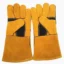 dyed split leather welder gloves with part number FEWG12 are designed to provide robust protection and comfort for welders and professionals working in high-heat environments. These gloves are made from premium dyed split leather, featuring a back and thumb constructed from a single piece of leather, which enhances durability and ensures a comfortable fit. The palm is reinforced with an extra layer of leather, offering added protection and improved grip during use. Inside, the gloves are lined with a non-woven material and cotton drill fabric, providing excellent insulation and comfort. The FEWG12 gloves are available in standard sizes of 33 cm, 35 cm, and 40 cm, with options for customization to suit specific needs. These gloves are ideal for ensuring safety and comfort during welding and other high-temperature tasks.