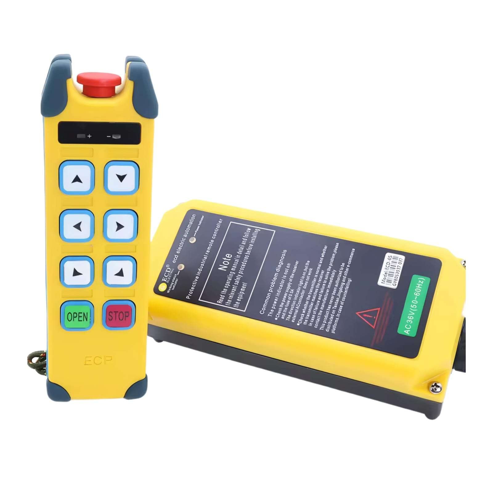 The ECD-6S Single Speed EOT Crane Industrial Remote Control Switch is a robust and versatile device designed for demanding industrial environments. With an IP68 protection level, it is dustproof and waterproof, ensuring reliable performance even under harsh conditions. The switch offers a rapid response time of ≤20 milliseconds and is built with WF2 corrosion protection, making it suitable for corrosive environments. It operates across a broad temperature range of -40°C to +85°C and can withstand humidity levels from 0% to 97% RH. The durable shell is made of PA66 with high-quality fiber, providing excellent impact resistance. The device supports customizable transmitting frequencies (315 MHz, 433 MHz, 868 MHz) and operates on a wide receiver voltage range of 12V-65V or 65V-440V. With a standard remote control distance of 225 meters, which can be extended up to 5 kilometers, the ECD-6S is adaptable to various operational needs.