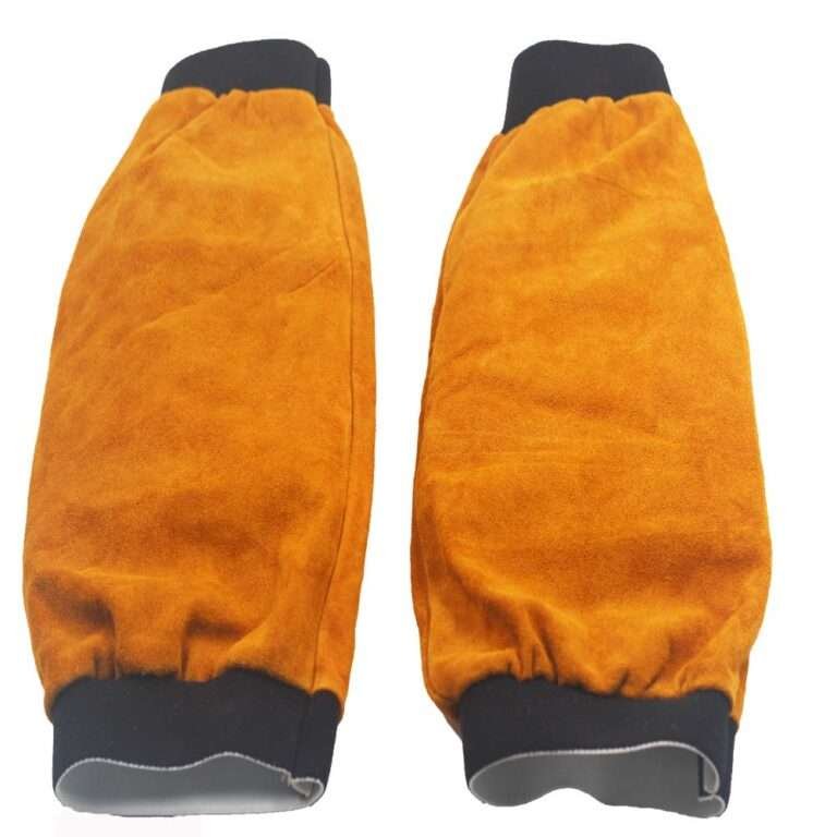 Leather Welder Sleeves, model FEWS03, made from 100% Brown Split Leather, offer robust protection and comfort for professionals working in hazardous environments. Constructed from high-quality brown split leather, these sleeves are designed to resist heat, sparks, and abrasions, ensuring long-lasting durability. The split leather provides a balance of toughness and flexibility, allowing for ease of movement while delivering reliable protection. Key features of the FEWS03 include reinforced stitching for enhanced durability, adjustable straps for a secure and customizable fit, and comprehensive forearm coverage to protect against burns and injuries. The natural brown color adds a professional look while maintaining practicality. Available in various sizes, these sleeves are engineered to provide a comfortable and effective fit, making them ideal for welders and other high-risk industrial applications.