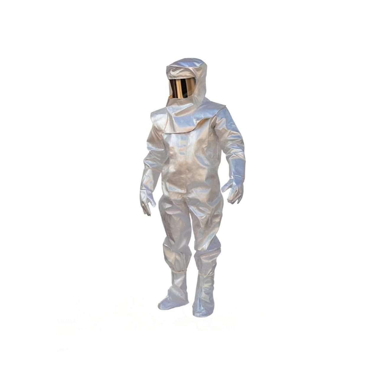 The HRS-BB protective gear is meticulously designed for extreme high-temperature conditions, providing comprehensive protection and functionality. Made from a combination of aluminium foil and fabric lining, this gear offers superior thermal resistance and durability. The set includes a hood, tops, trousers, spats, a backbag for Self-Contained Breathing Apparatus (SCBA), and gloves, ensuring full-body protection and ease of access to essential safety equipment.