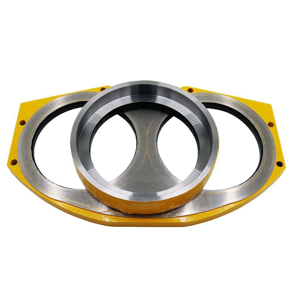 The Pump Spectacle Wear Plate and Cutting Ring (part number 261122002) is a crucial component in concrete pumps, designed to provide protection against wear and facilitate efficient operation. This part is specifically engineered to withstand the abrasive nature of concrete and to enhance the durability of the pumping system.