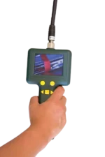 The REF-SCOPE video inspection camera is a versatile tool designed for inspecting hard-to-reach areas such as nooks and crannies, checking for leaks, nameplates, contamination, or connections. Equipped with a color image sensor and six LED lamps for ambient lighting, it ensures clear visibility in various environments. Control is facilitated via a rotary switch, allowing for easy operation. The shoulder bag includes essential accessories such as cleaning materials, batteries, an AV cable, mirror, hook, and an extra strong magnet. The device features a 3.5″ TFT digital panel display with a resolution of 320 x 240 pixels, providing crisp and detailed images. It offers display adjustment options for contrast, brightness, sharpness, and color saturation. The LCD backlight is powered by LED technology, ensuring optimal visibility. The camera head has a diameter of 10 mm, while the shaft measures 42″ in length. Powered by four AA batteries, it offers a battery life of up to three hours of full functional operation. With a working temperature range of 32 °F to 113 °F (0 °C to 45 °C), it is suitable for various inspection tasks. The device is available in yellow or green color options.